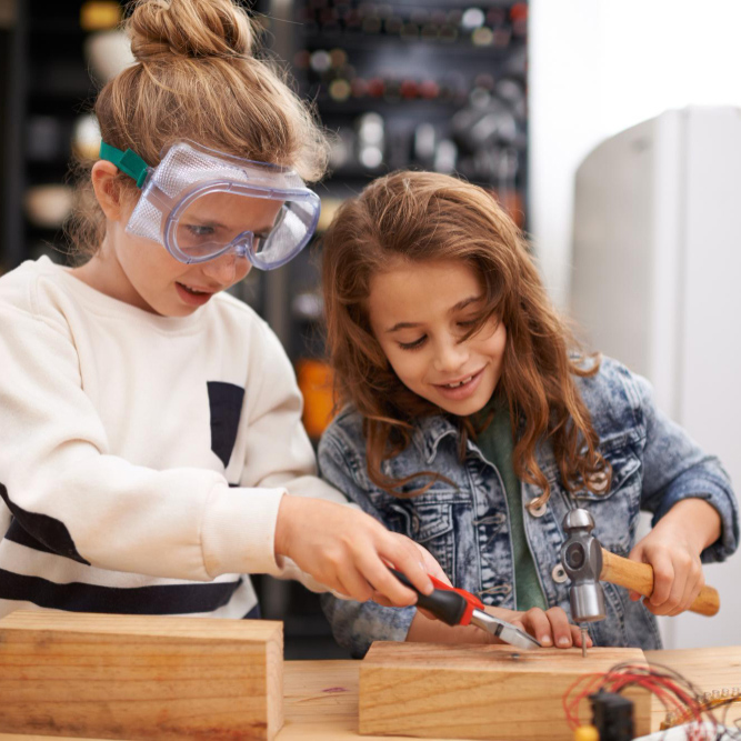 Il laboratorio ha l’obiettivo di stimolare la manualità, la progettazione, la creatività e la libertà di espressione. I bambini possono concretamente costruire un oggetto in legno, imparando tutte le fasi di lavorazione, dal taglio alla finitura, acquisendo manualità e fiducia nelle proprie capacità. Utilizzando seghetti, morse, pinze, martelli e tutto ciò che occorre si può trasformare un pezzo di legno anonimo in altro, come un giocattolo o un piccolo scrigno dei segreti, ma sempre personalizzato.